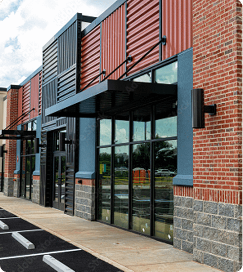 Steel-frame commercial plaza with coordinated tenant fit-outs. - Gold’s Gym – Airdrie